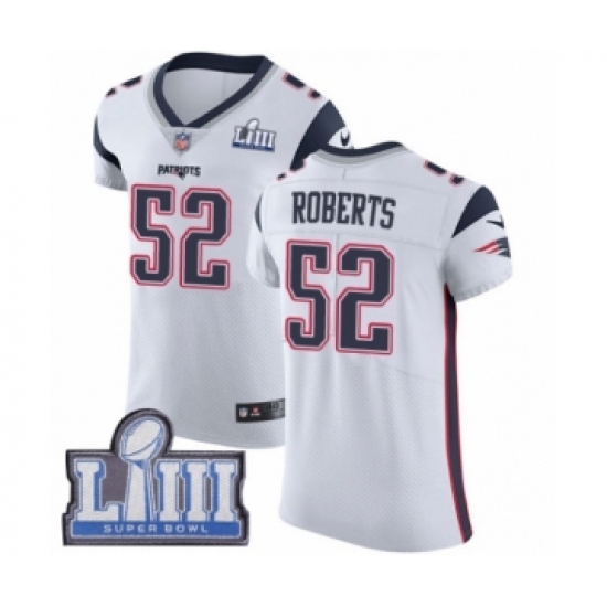 >Men's Nike New England Patriots #52 Elandon Roberts White Vapor Untouchable Elite Player Super Bowl LIII Bound NFL Jersey