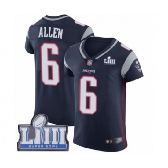 Men's Nike New England Patriots #6 Ryan Allen Navy Blue Team Color Vapor Untouchable Elite Player Super Bowl LIII Bound NFL Jersey