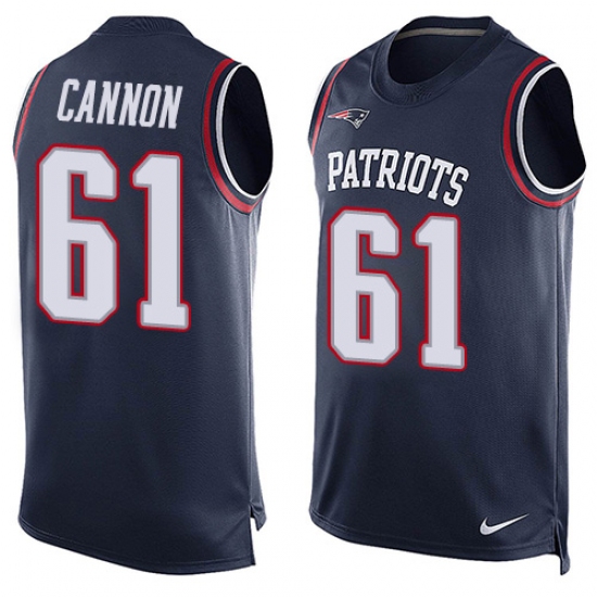 Men's Nike New England Patriots #61 Marcus Cannon Limited Navy Blue Player Name & Number Tank Top NFL Jersey