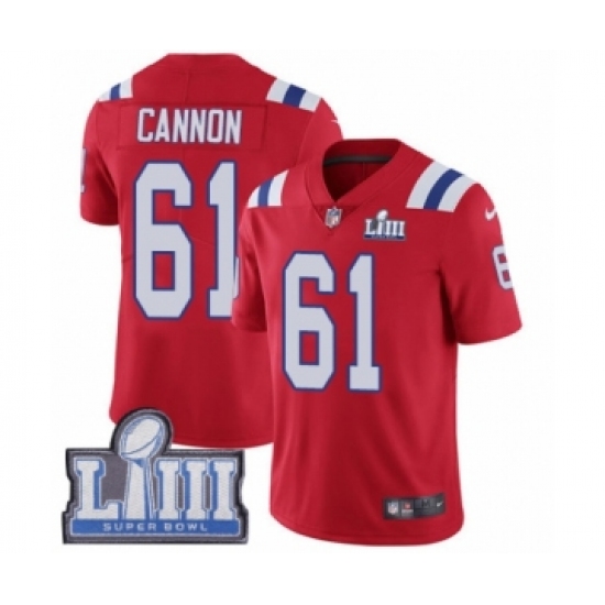 >Men's Nike New England Patriots #61 Marcus Cannon Red Alternate Vapor Untouchable Limited Player Super Bowl LIII Bound NFL Jersey