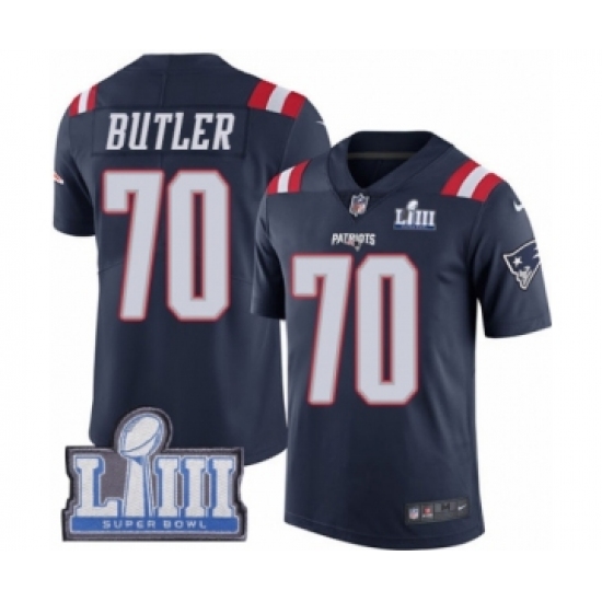 Men's Nike New England Patriots #70 Adam Butler Limited Navy Blue Rush Vapor Untouchable Super Bowl LIII Bound NFL Jersey