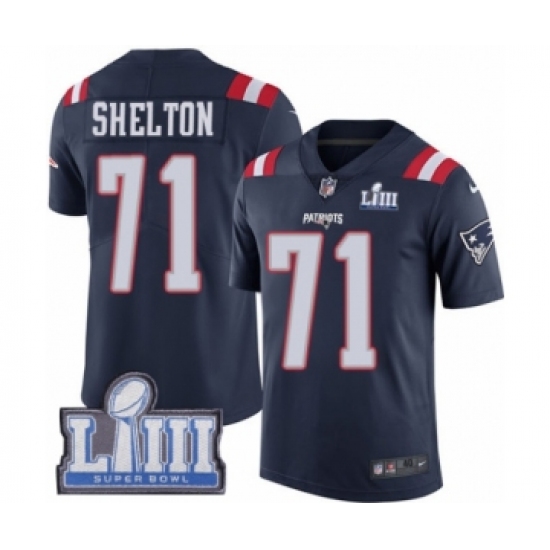 Men's Nike New England Patriots #71 Danny Shelton Limited Navy Blue Rush Vapor Untouchable Super Bowl LIII Bound NFL Jersey