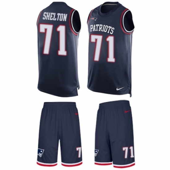 Men's Nike New England Patriots #71 Danny Shelton Limited Navy Blue Tank Top Suit NFL Jersey