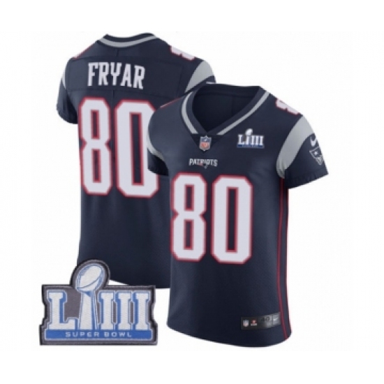 Men's Nike New England Patriots #80 Irving Fryar Navy Blue Team Color Vapor Untouchable Elite Player Super Bowl LIII Bound NFL Jersey