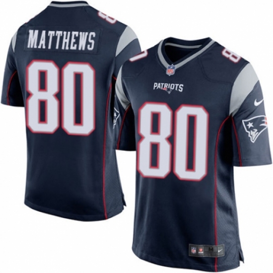 Men's Nike New England Patriots #80 Jordan Matthews Game Navy Blue Team Color NFL Jersey