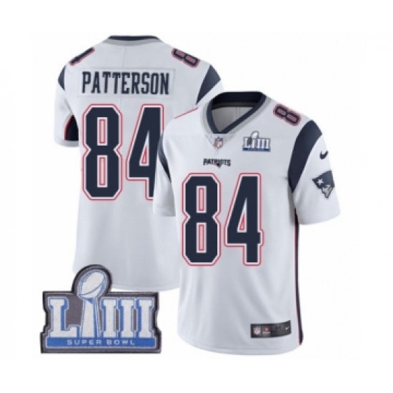>Men's Nike New England Patriots #84 Cordarrelle Patterson White Vapor Untouchable Limited Player Super Bowl LIII Bound NFL Jersey