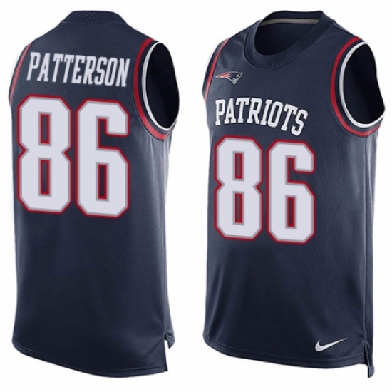 >Men's Nike New England Patriots #86 Cordarrelle Patterson Limited Navy Blue Player Name & Number Tank Top NFL Jersey
