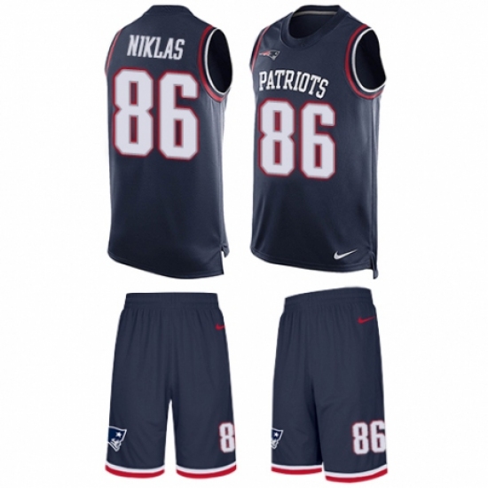 Men's Nike New England Patriots #86 Troy Niklas Limited Navy Blue Tank Top Suit NFL Jersey