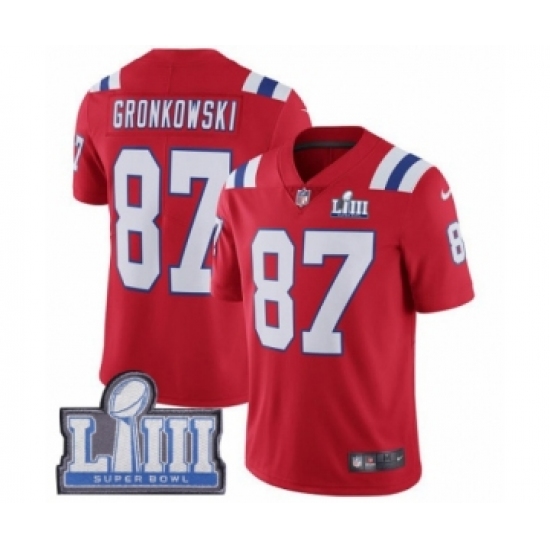 Men's Nike New England Patriots #87 Rob Gronkowski Red Alternate Vapor Untouchable Limited Player Super Bowl LIII Bound NFL Jersey