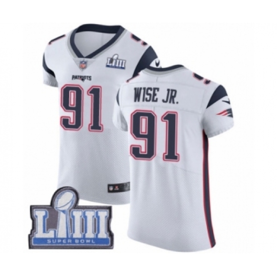 Men's Nike New England Patriots #91 Deatrich Wise Jr White Vapor Untouchable Elite Player Super Bowl LIII Bound NFL Jersey