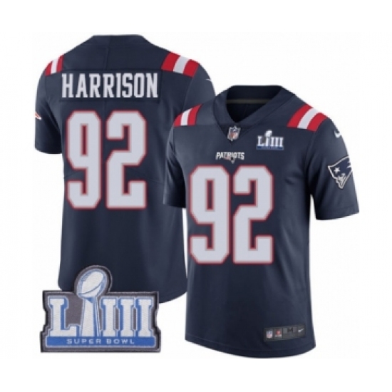 Men's Nike New England Patriots #92 James Harrison Limited Navy Blue Rush Vapor Untouchable Super Bowl LIII Bound NFL Jersey