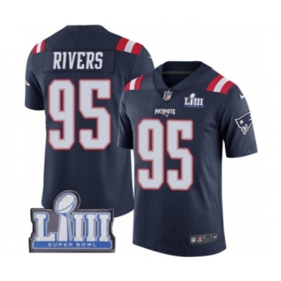 Men's Nike New England Patriots #95 Derek Rivers Limited Navy Blue Rush Vapor Untouchable Super Bowl LIII Bound NFL Jersey