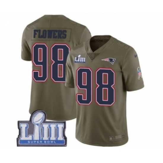 Men's Nike New England Patriots #98 Trey Flowers Limited Olive 2017 Salute to Service Super Bowl LIII Bound NFL Jersey