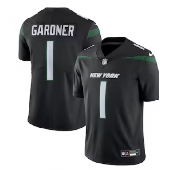 Men's Nike New York Jets #1 Ahmad Sauce Gardner Black 2023 F.U.S.E. Vapor Limited Throwback Stitched Football Jersey