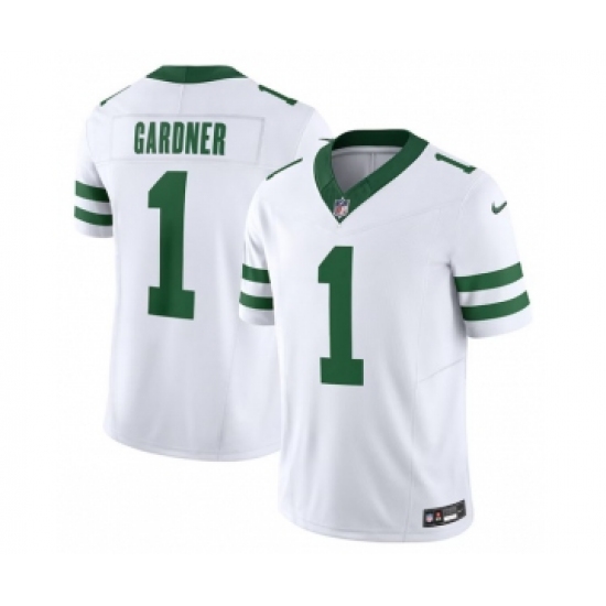 Men's Nike New York Jets #1 Ahmad Sauce Gardner White 2023 F.U.S.E. Vapor Limited Throwback Stitched Football Jersey