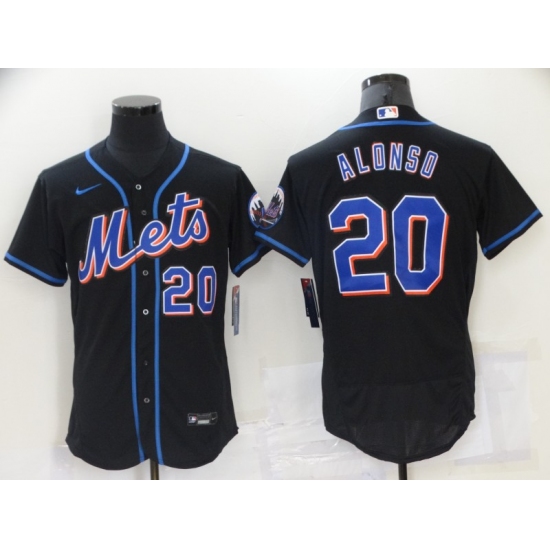 Men's Nike New York Mets #20 Pete Alonso Black Elite Jersey