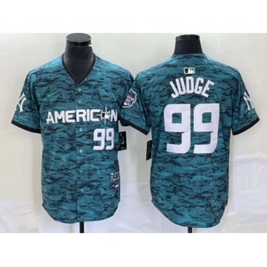 >Men's Nike New York Yankees #99 Aaron Judge Number Teal 2023 All star Cool Base Stitched Baseball Jersey