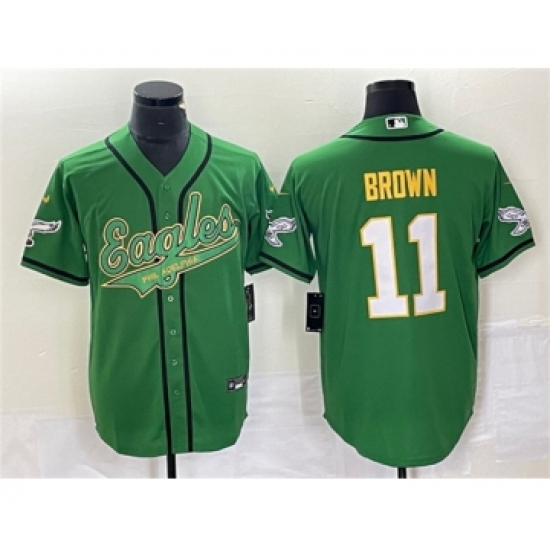 Men's Nike Philadelphia Eagles #11 A. J. Brown Green Gold Cool Base Baseball Stitched Jersey