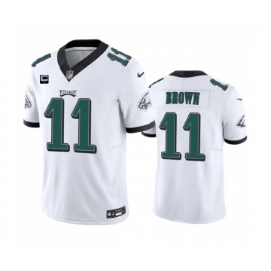 >Men's Nike Philadelphia Eagles #11 A. J. Brown White 2023 F.U.S.E. 1-Star C Vapor Untouchable Limited Football Stitched Jersey