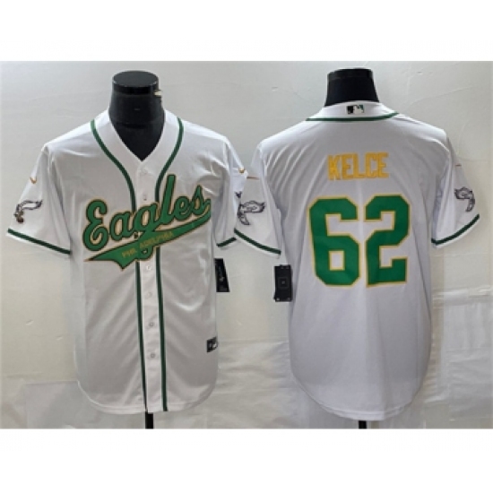 Men's Nike Philadelphia Eagles #62 Jason Kelce White Gold Cool Base Baseball Stitched Jersey