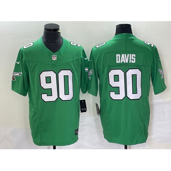Men's Nike Philadelphia Eagles #90 Jordan Davis Green 2023 F.U.S.E. Vapor Limited Throwback Stitched Football Jersey