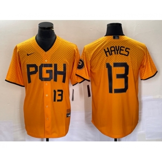Men's Nike Pittsburgh Pirates #13 KeBryan Hayes Gold 2023 City Connect Stitched Jersey