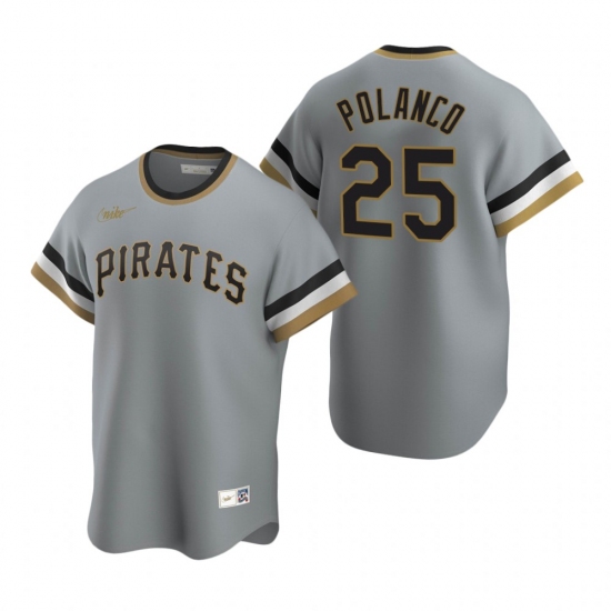 >Men's Nike Pittsburgh Pirates #25 Gregory Polanco Gray Cooperstown Collection Road Stitched Baseball Jersey