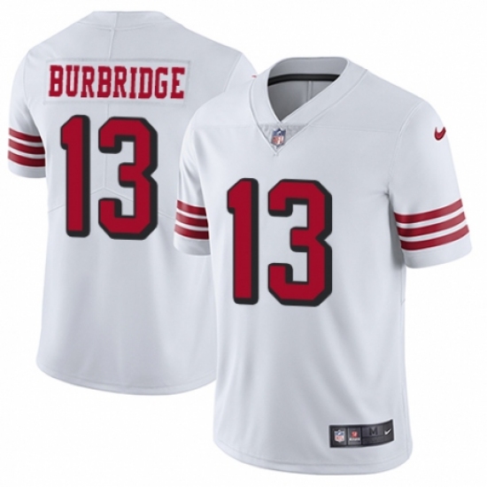 >Men's Nike San Francisco 49ers #13 Aaron Burbridge Limited White Rush Vapor Untouchable NFL Jersey