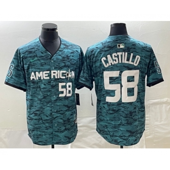 Men's Nike Seattle Mariners #58 Diego Castillo Number Teal 2023 All Star Stitched Baseball Jersey