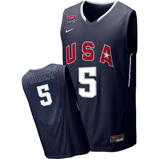 Men's Nike Team USA #5 Kevin Durant Authentic Navy Blue 2010 World Basketball Tournament Jersey