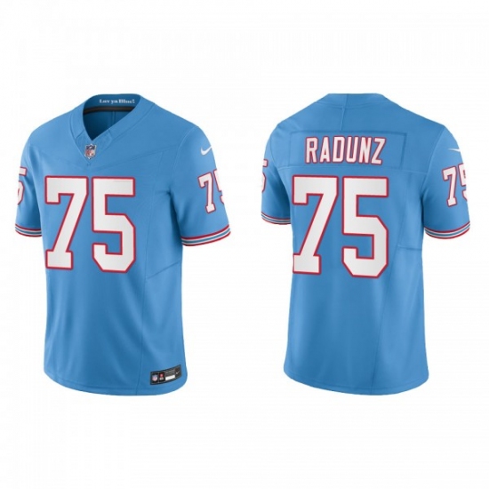 Men's Nike Tennessee Titans #75 Dillon Radunz Light Blue 2023 F.U.S.E. Vapor Limited Throwback Stitched Football Jersey