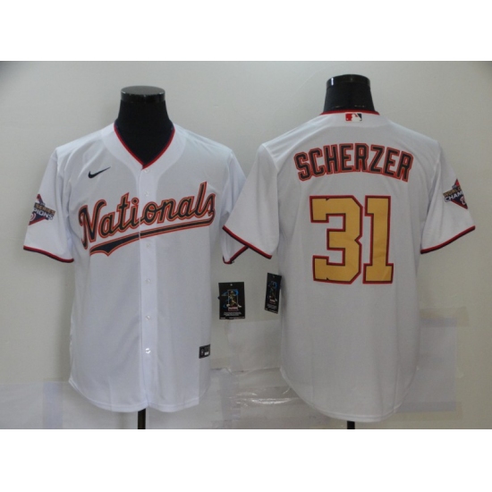 Men's Nike Washington Nationals #31 Max Scherzer White Gold Home Stitched Baseball Jersey