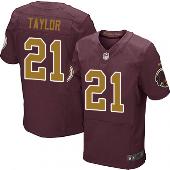 Men's Nike Washington Redskins #21 Sean Taylor Elite Burgundy Red/Gold Number Alternate 80TH Anniversary NFL Jersey