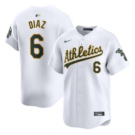 Men's Oakland Athletics #6 Jordan Diaz White Home Limited Stitched Jersey