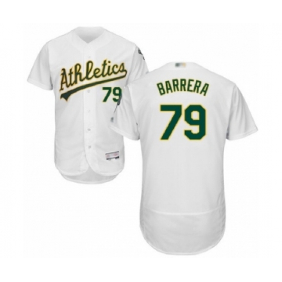 >Men's Oakland Athletics #79 Luis Barrera White Home Flex Base Authentic Collection Baseball Player Jersey