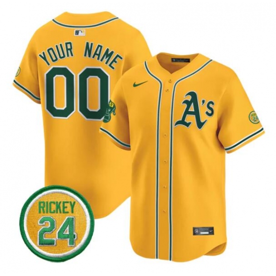 Men's Oakland Athletics Active Player Custom Gold Rickey Henderson Patch Vapor Premier Limited Stitched Baseball Jersey