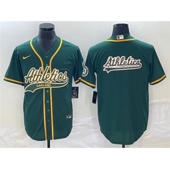 Men's Oakland Athletics Green Team Big Logo Cool Base Stitched Baseball Jersey 002