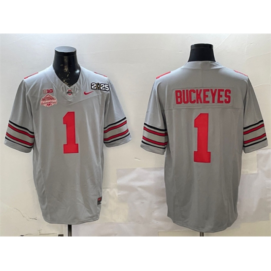 Men's Ohio State Buckeyes #1 Buckeyes Grey 2025 CFP Final With National Champions F.U.S.E. Vapor Limited Stitched Football Jersey