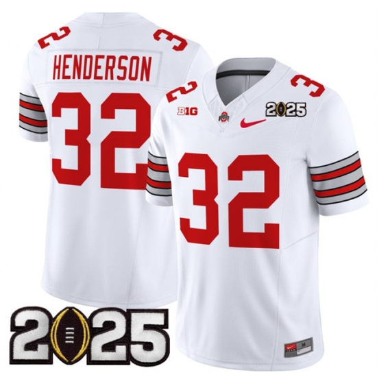 Men's Ohio State Buckeyes #32 TreVeyon Henderson White 2025 CFP Final With National Champions F.U.S.E. Vapor Limited Stitched Football Jersey