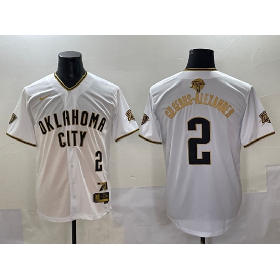 >Men's Oklahoma City Thunder #2 Shai Gilgeous-Alexander White Gold 2025 Finals Vapor Stitched Baseball Jersey