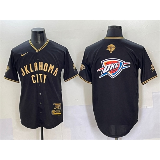 Men's Oklahoma City Thunder Team Big Logo Black Gold 2025 Finals Vapor Stitched Baseball Jersey
