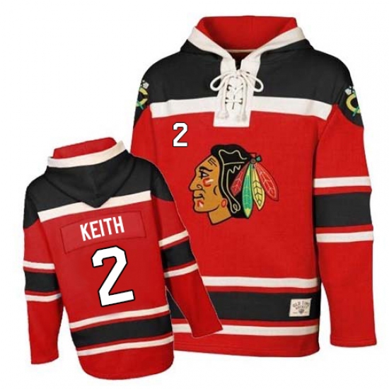 Men's Old Time Hockey Chicago Blackhawks #2 Duncan Keith Premier Red Sawyer Hooded Sweatshirt NHL Jersey