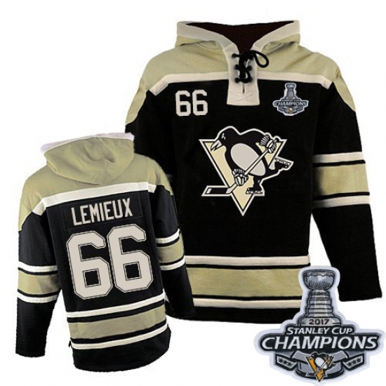 Home>NHL>Pittsburgh Penguins>Mario Lemieux>Men's Old Time Hockey Pittsburgh Penguins #66 Mario Lemieux Authentic Black Sawyer Hooded Sweatshirt 2017 Stanley Cup Champions
