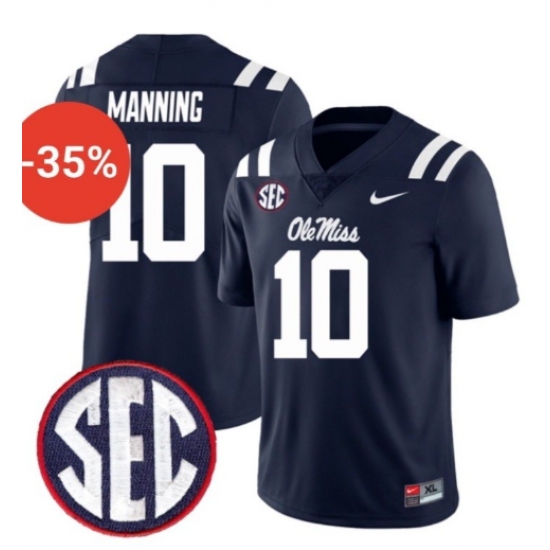 Men's Ole Miss Rebels #10 Eli Manning Navy F.U.S.E. Stitched Jersey