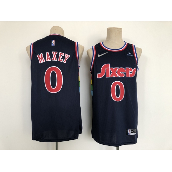 Men's Tyrese Maxey #0 Philadelphia 76ers 2021-22 City Navy Jersey