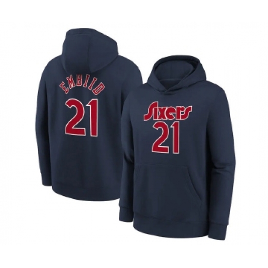 >Men's Philadelphia 76ers #21 Joel Embiid Navy Pullover Hoodie