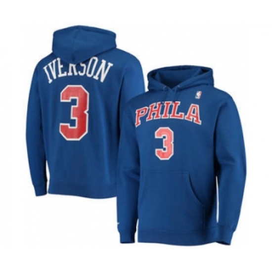 Men's Philadelphia 76ers #3 Allen Iverson 2021 Blue Pullover Basketball Hoodie