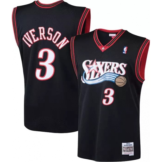 Men's Philadelphia 76ers #3 Allen Iverson Black Throwback Basketbal Jersey