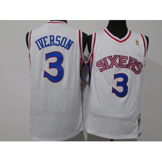 Men's Mitchell and Ness Philadelphia 76ers #3 Allen Iverson Authentic White Throwback NBA Jersey