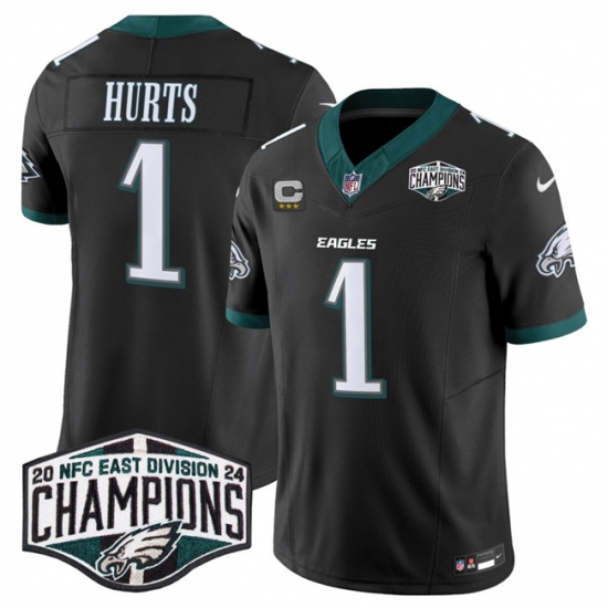 Men's Philadelphia Eagles #1 Jalen Hurts Black 2024 New NFC East Champions With 3-Star C F.U.S.E. Vapor Untouchable Limited Stitched Football Jersey